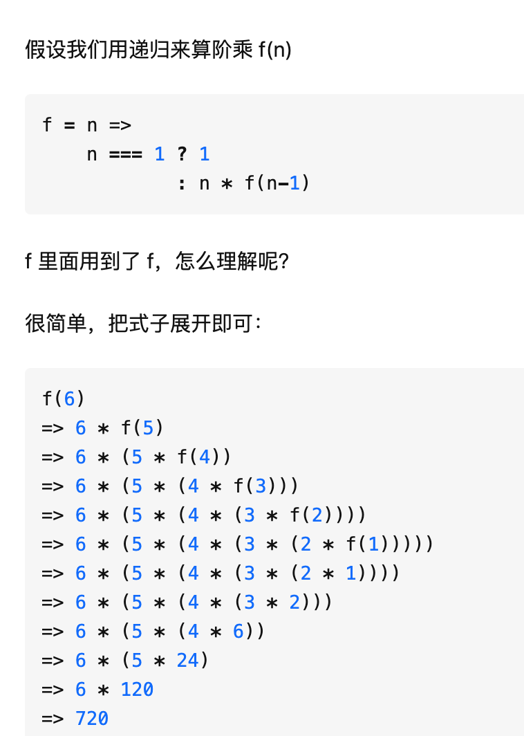 }else{ //先将问题全部描述展开,再由尽头返回依次解决每步中剩余部分的问题