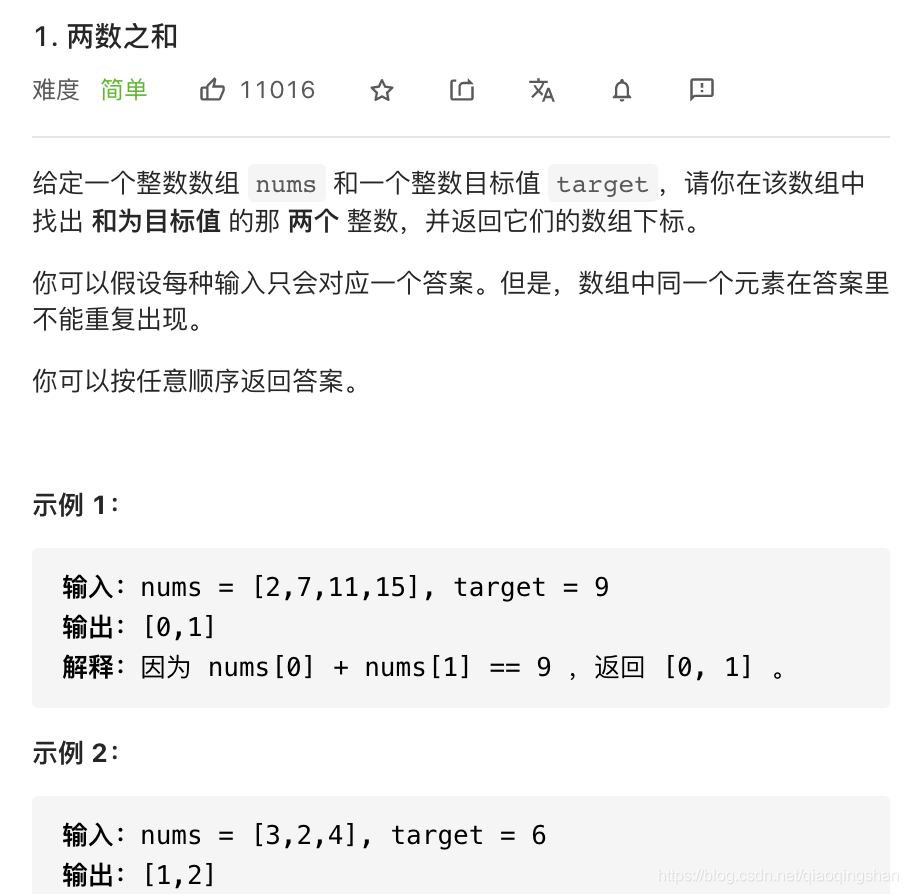 1.设置map,其key为nums数组里的各元素,其value则为该元素对应的下标。2.遍历数组,先判断map里是否有key等于target-nums[i]。