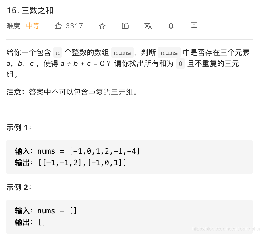 // 去重复逻辑如果放在这里,0,0,0 的情况,可能直接导致 right<=left 了,从而漏掉了 0,0,0 这种三元组
